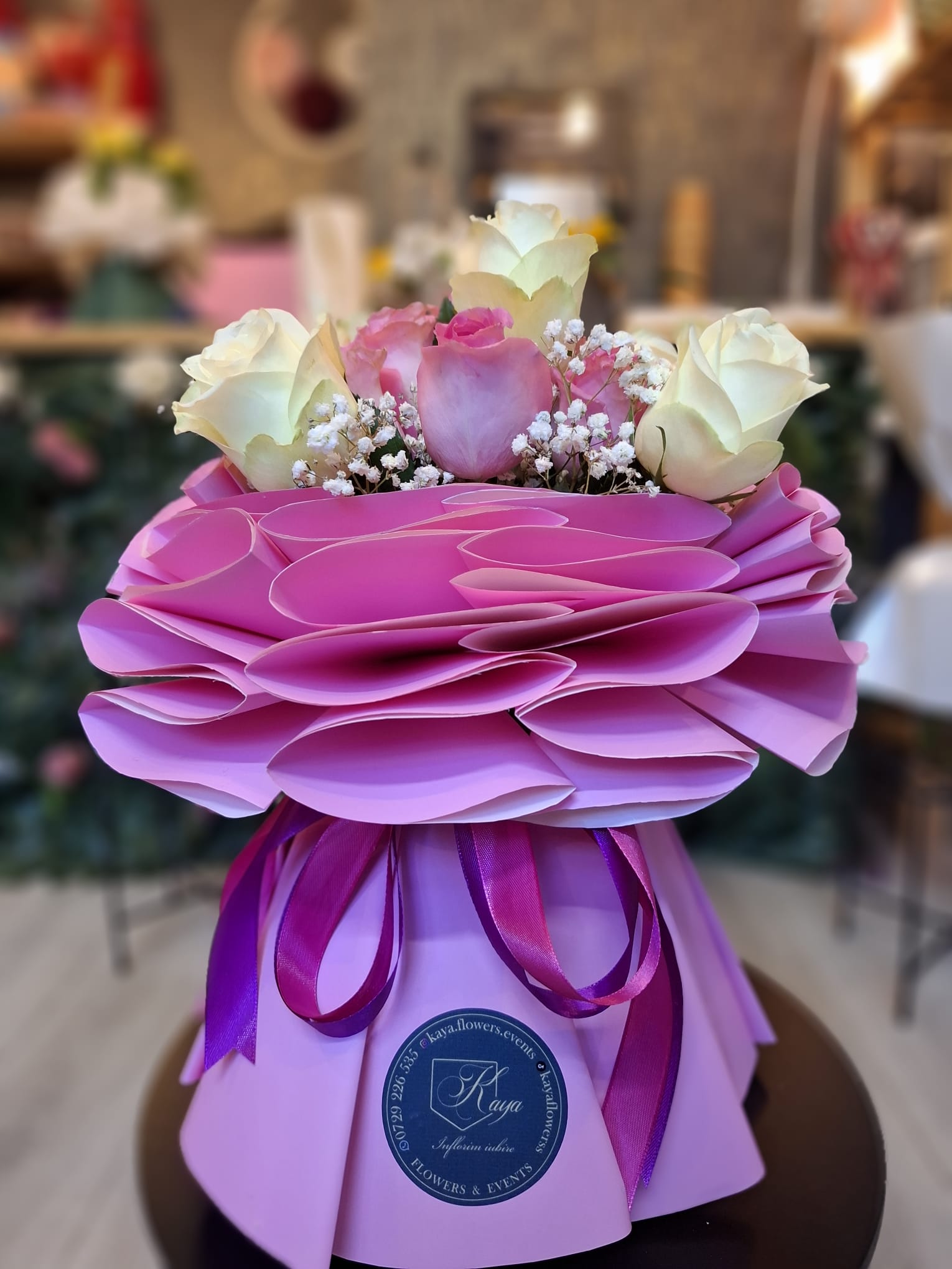 Pretul produsului pe care l-ati ales din floraria online Kaya include o felicitare cadou, pe care vom scrie caligrafic textul ales de dumneavoastra. Serviciul de livrare flori este gratuit in Bucuresti si functioneaza prin curieri proprii, astfel incat florile sa ajunga in stare perfecta la destinatarul ales. In functie de stoc si de sezon, produsele pot suferi mici modificari. Extraoptiunile sunt cu titlu de prezentare si nu sunt incluse in pretul produsului, insa acestea pot fi comandate alaturi de produsele dorite, din categoria "Extraoptiuni". Comanda acum in Bucuresti, flori cu livrare gratuita! Pentru livrarile in tara, florile vor fi livrate de colaboratori locali. Produsele pot suferi modificari (tipul florilor, cutiile, ambalajele, alte materiale componente), in functie de stocul colaboratorului local. Programul de livrare poate fi diferit in fiecare localitate.